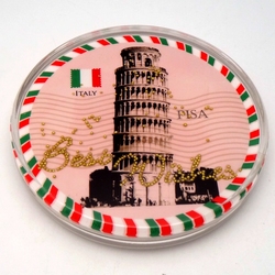 ثقالة مستديرة 3 بوصة, ثقالة مستديرة 3 بوصة ، يمكن الرؤية عليها ، أشكال رمال ، دولفين ، وشجرة النخيل ، رمل الشاطئ ، من داخل قشرة البحر ، تذكار