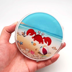 Life's a Beach Novedad Regalos Posavasos de cangrejo acrílico relleno de líquido con Shell Sands Posavasos líquidos